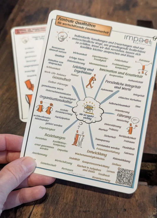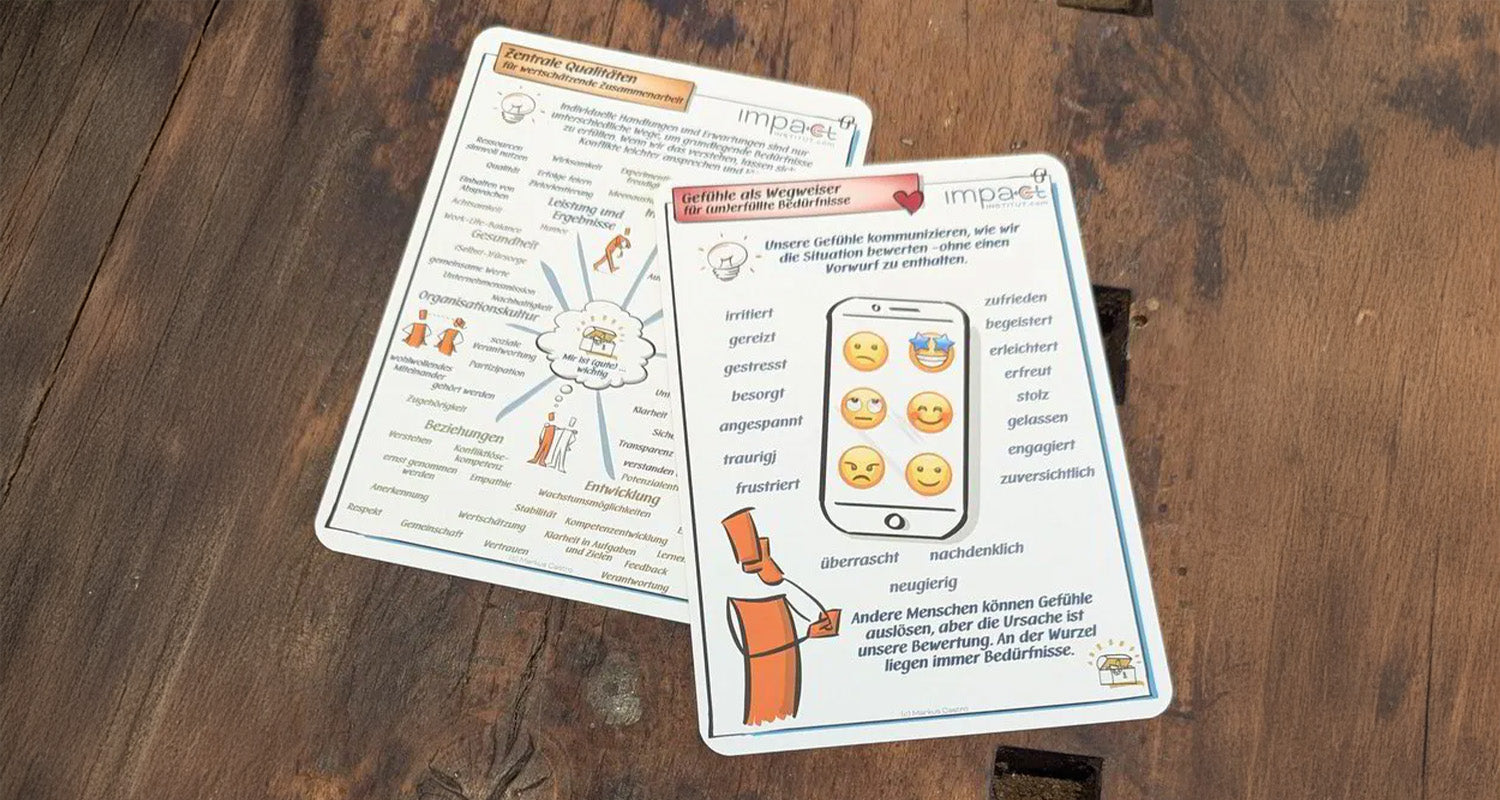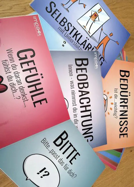 Wir vom Impact Institut glauben daran, dass gute Kommunikation die Grundlage für starke Beziehungen, erfolgreiche Zusammenarbeit und persönliche Entwicklung ist. Deshalb entwickeln wir praxisnahe Tools und Arbeitsmaterialien, die Menschen dabei unterstützen, bewusster zu kommunizieren, Bedürfnisse klarer zu erkennen und echte Verbindung zu schaffen. Unsere Produkte entstehen aus langjähriger Trainings- und Coaching-Erfahrung und werden mit dem Anspruch gestaltet, leicht anwendbar, wirkungsvoll und nachhaltig einsetzbar zu sein - im beruflichen Alltag ebenso wie im privaten Leben.