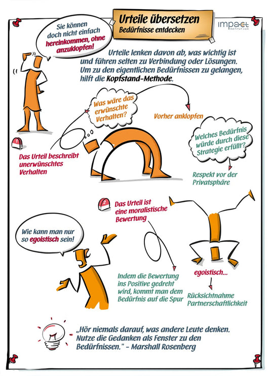 Metaplan-Plakat - Kopfstand Methode: Urteile übersetzen